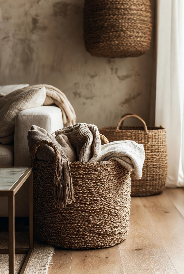 When incorporating woven baskets into your design, think about layering sizes and colors for added visual interest. Hang them on walls as art pieces or place them on shelves to showcase beautiful textiles. For a unified look, coordinate the colors of the baskets with your chosen palette, allowing them to act as a bridge between different elements in the room.