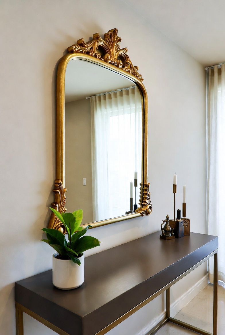 Consider placing a gold mirror above a console table in your entryway to instantly uplift the space. The warm tones of gold can also beautifully complement neutral color palettes, providing a striking contrast when set against darker hues. Alternatively, hanging a collection of smaller gold mirrors in a gallery wall formation can add depth and character to your living area, turning a simple wall into an eye-catching focal point.
