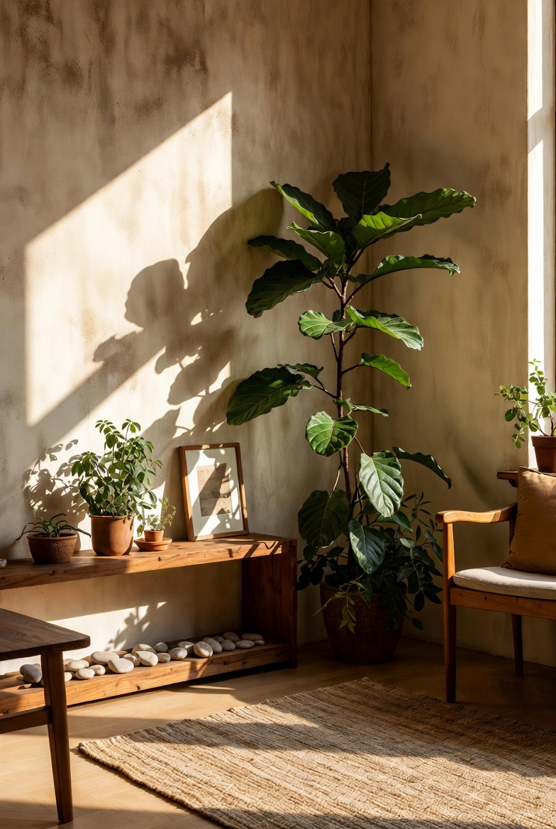 - Use natural fibers like jute or linen for rugs, curtains, and upholstery.