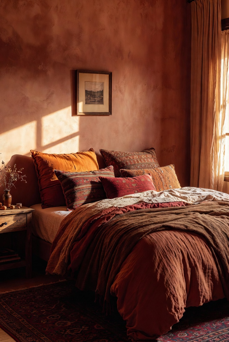 - Select paints in warm tones like beige, taupe, and soft terracotta.