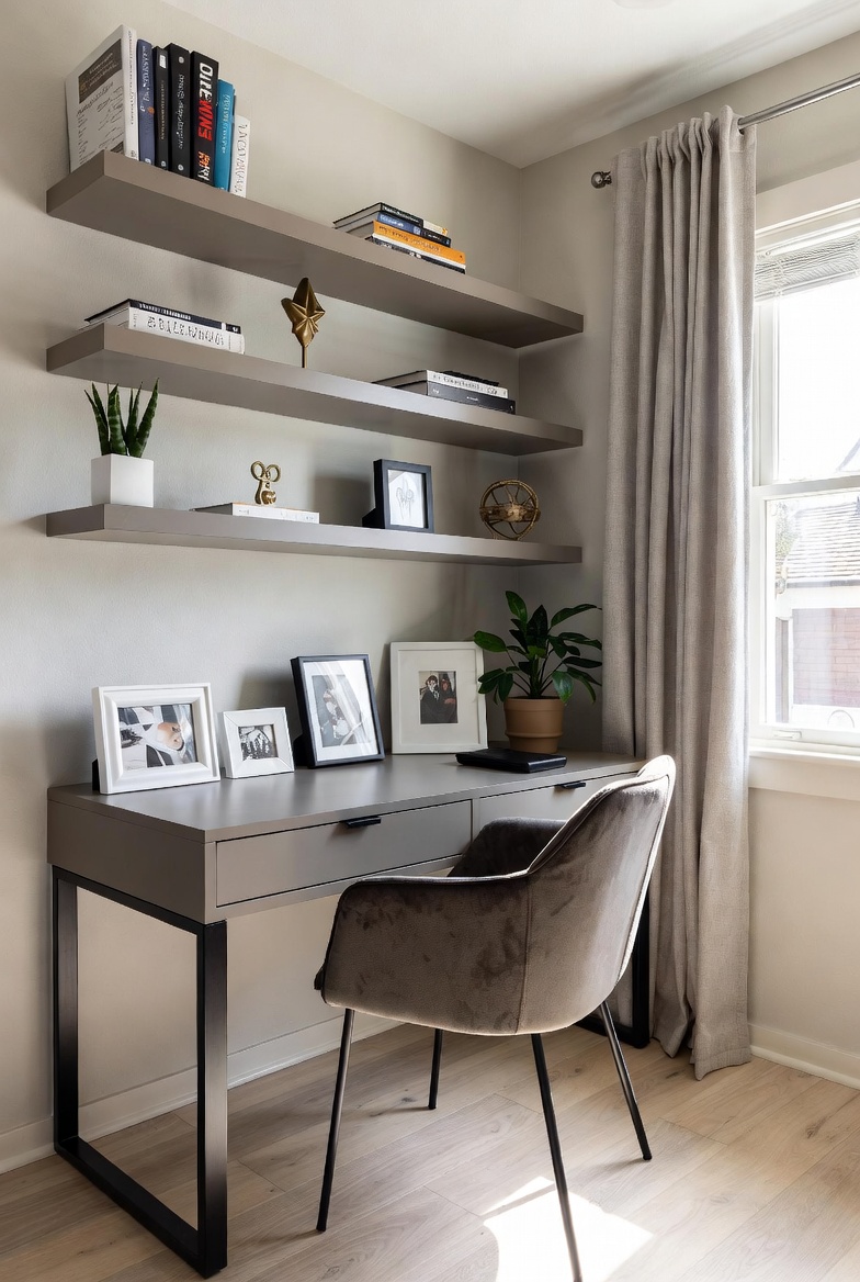 - Use a decorative shelf to showcase collectibles that reflect your interests, such as books or travel souvenirs.