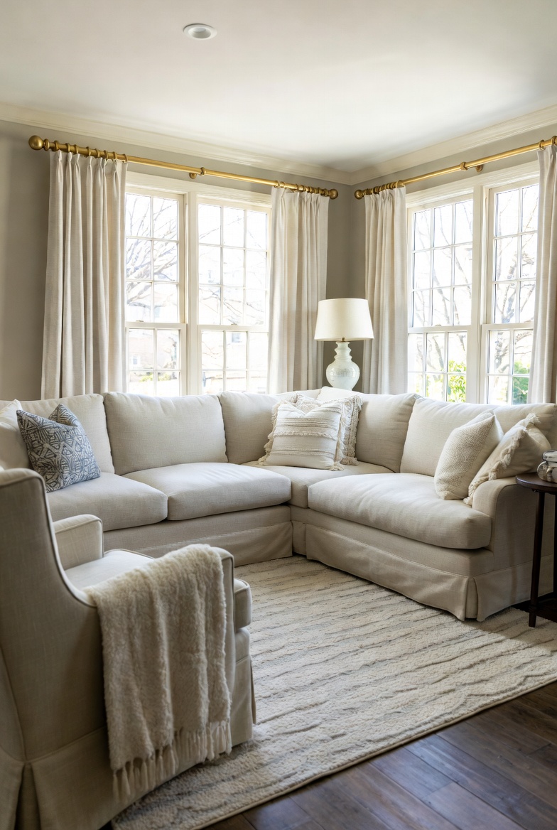- Incorporate warm accent colors through throw pillows and curtains.