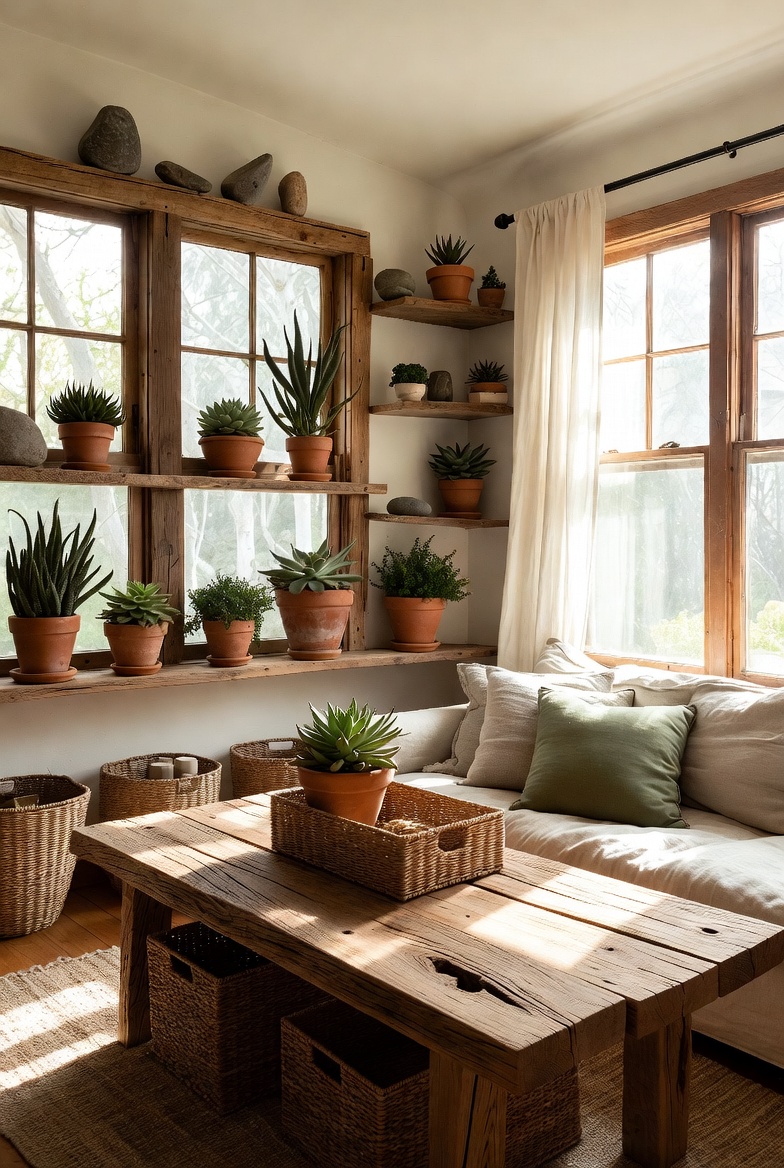 Natural lighting is a pivotal aspect of earthy home decor ideas, as it illuminates spaces and fosters a lively atmosphere. Emphasizing natural light can make your home feel more open and connected to the outdoors. Make a conscious effort to keep windows unobstructed; use sheer curtains that allow light to filter through gently while maintaining privacy. Alternatively, opt for bi-fold doors that open up to your garden, allowing light and nature to blend effortlessly into your living space.