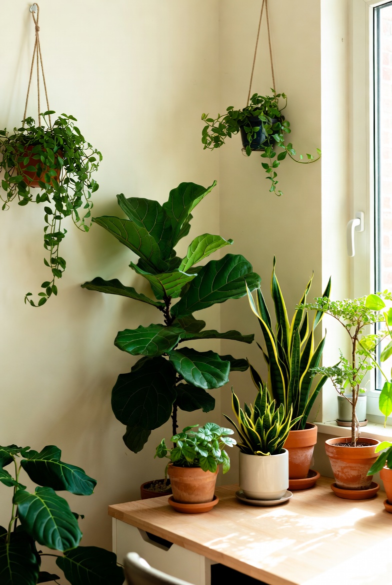 Integrating indoor plants is one of the simplest yet most impactful earthy home decor ideas. Not only do they purify the air, but they also create a vibrant connection to nature. From a towering fiddle leaf fig in the corner of the living room to trailing pothos draped elegantly from a bookshelf, plants can introduce life and color, enhancing the overall ambiance. When choosing plants, consider your space and lighting conditions; snake plants and ZZ plants are excellent low-maintenance options that thrive in various environments.