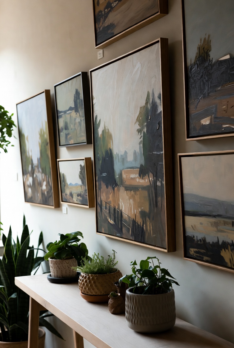 Artwork is a powerful tool for setting the mood in any room. To reinforce an earthy theme, choose pieces that highlight natural landscapes, botanical prints, or abstract representations of elements like stone and water. Opt for frames made of wood or reclaimed materials to enhance the organic feel of your decor.
