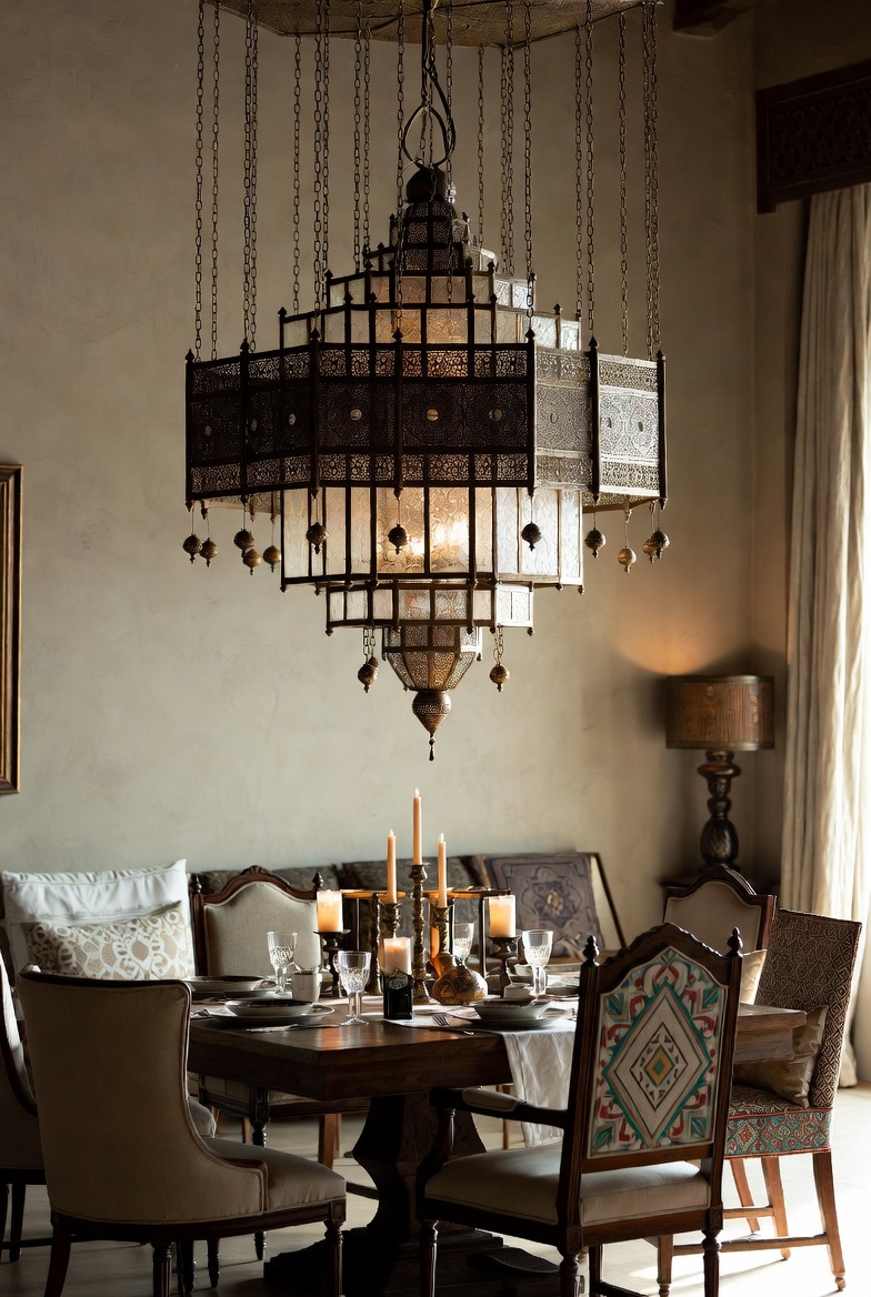 Consider hanging a beautiful Moroccan lamp in your living area or a Turkish mosaic pendant above your dining table. These pieces not only serve a functional purpose but also become conversation starters, beckoning guests to admire their detail and beauty. Use dimmers to control the ambiance, allowing the intricate designs of your light fixtures to cast intriguing patterns on the walls.