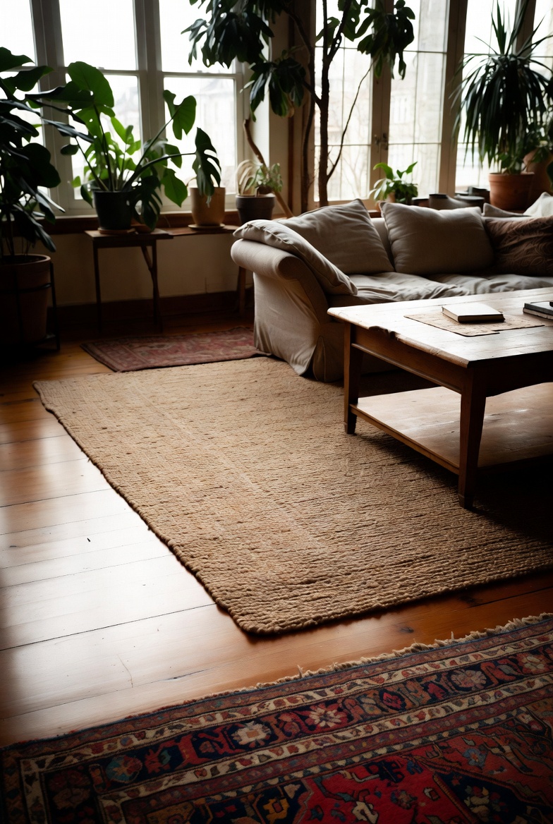 Consider the scale and proportion of the rugs you choose. A jute or sisal rug works beautifully as a base, offering an organic feel, while a colorful Kilim or a woven Persian rug adds personality on top. When arranged thoughtfully, layered rugs can help define spaces, making large rooms feel cozier or helping to delineate areas in open floor plans.