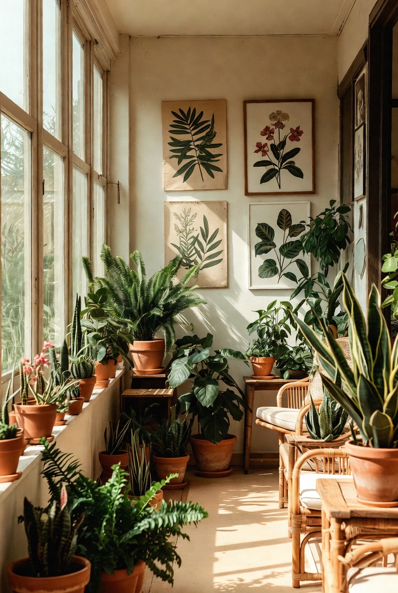 - Use wall-mounted shelves to display smaller pieces alongside plants for a natural touch.