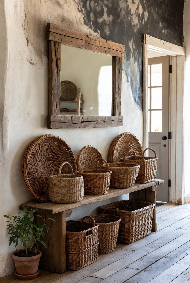- Hang smaller baskets on the wall for a unique storage solution that also acts as decor.