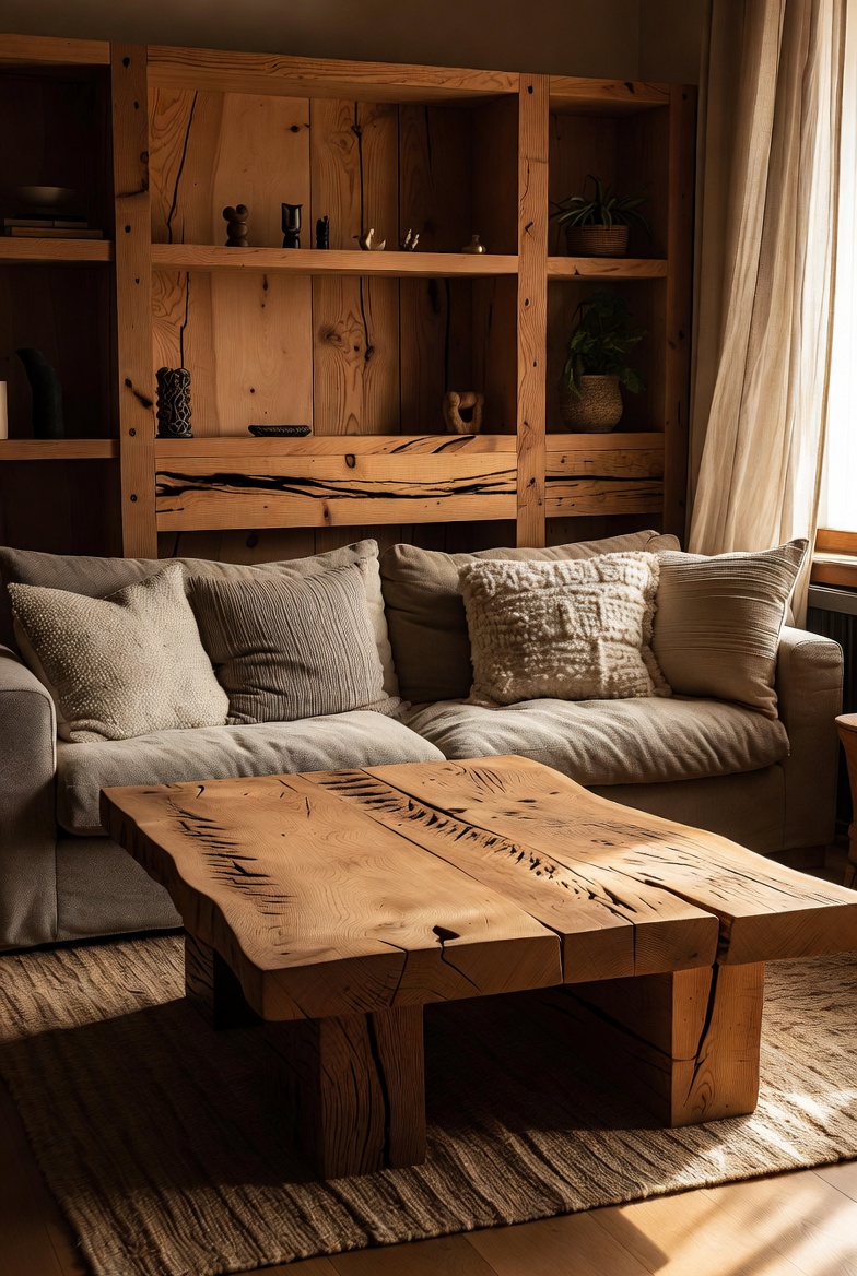 - Craft a rustic coffee table from weathered wood for a one-of-a-kind centerpiece in your living area.