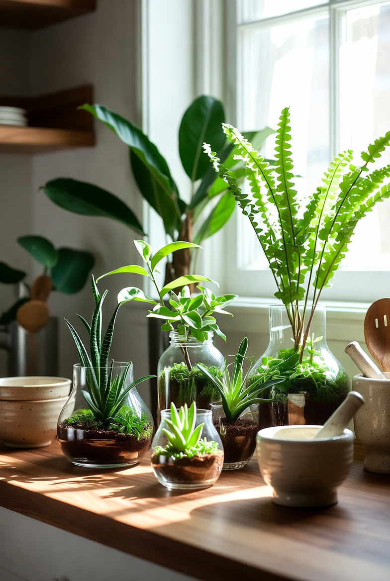Terrariums can serve as delightful centerpieces or accent pieces on shelves or side tables. Use decorative stones, moss, and unique figurines to enhance the beauty of your terrarium, experimenting with layouts that reflect your style. Not only do these living art pieces add color and texture, but they also purify your indoor air, contributing to a healthier home environment.