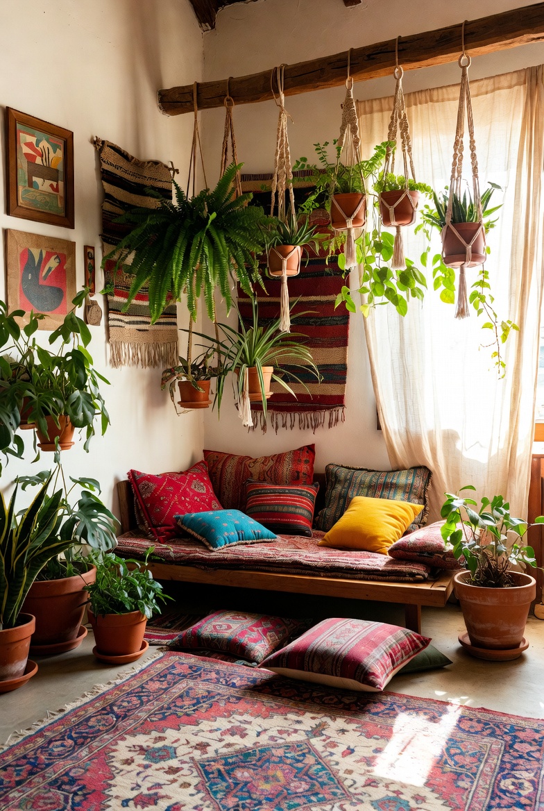 Incorporating plants is also crucial to bohemian decor, bringing life and a touch of nature into your space. Consider adding hanging plants or creating a small indoor garden with colorful pots. Artwork is another essential element; choose pieces that evoke emotion and spark conversation, showcasing your personality and world travels.