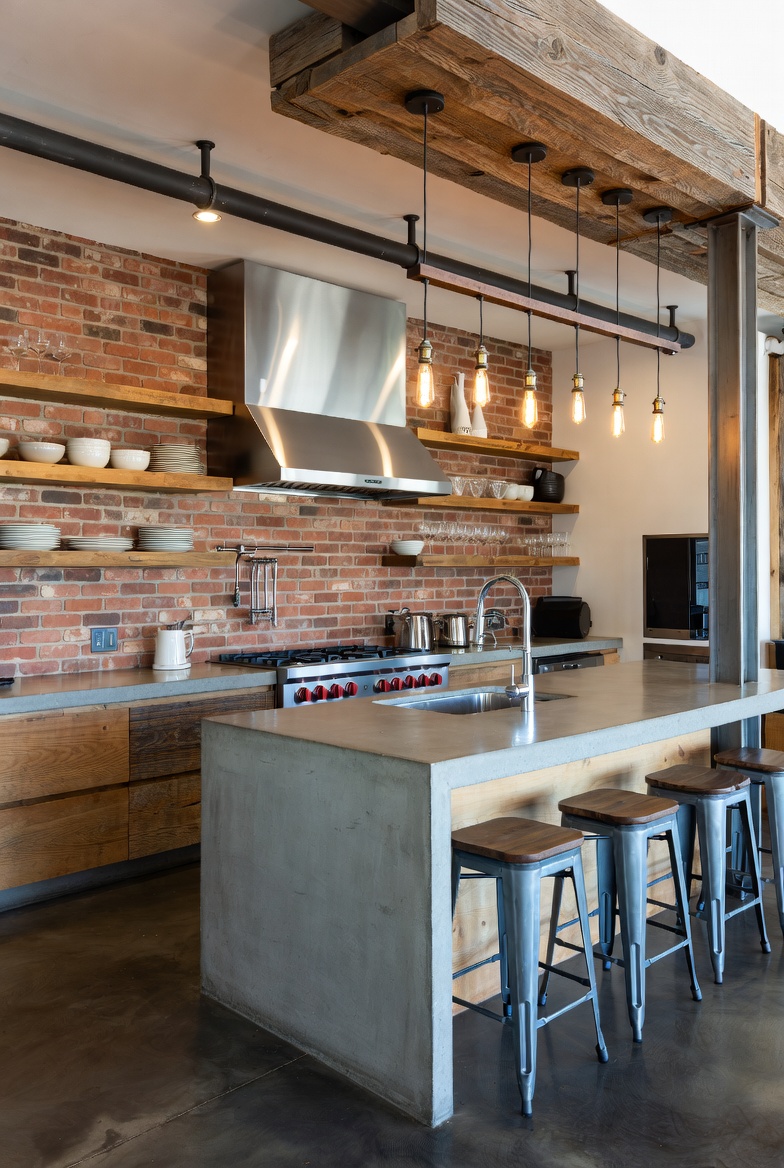 - Use exposed brick or concrete walls as a backdrop to enhance the industrial feel.