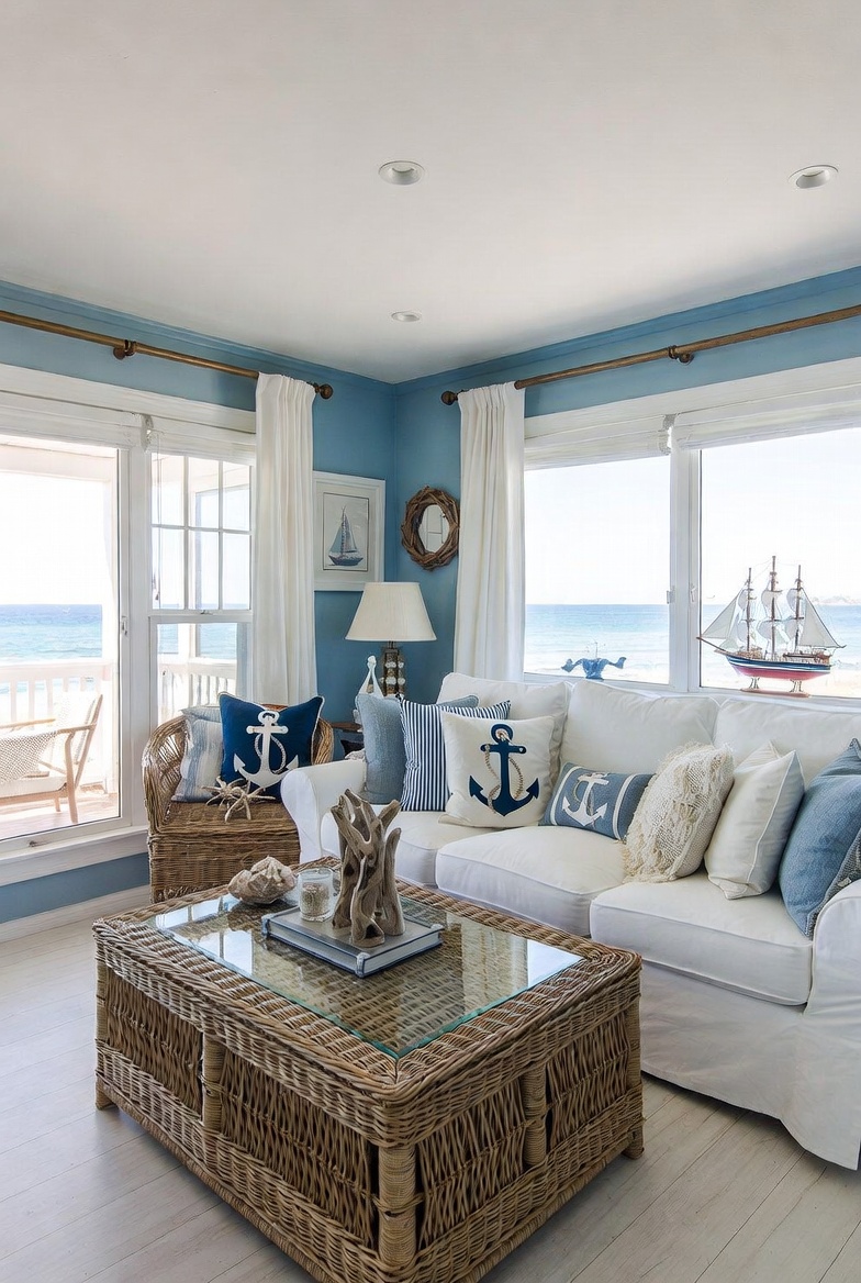 Introduce natural materials like driftwood, seashells, and jute to bridge the gap between the indoors and the coastal breeze. Light fabrics such as linen or cotton can be used for window treatments, giving an airy feel. Don’t shy away from marine-themed artwork or decorative accents—think framed prints of ocean scenes or throw pillows with nautical stripes—to complete the look.
