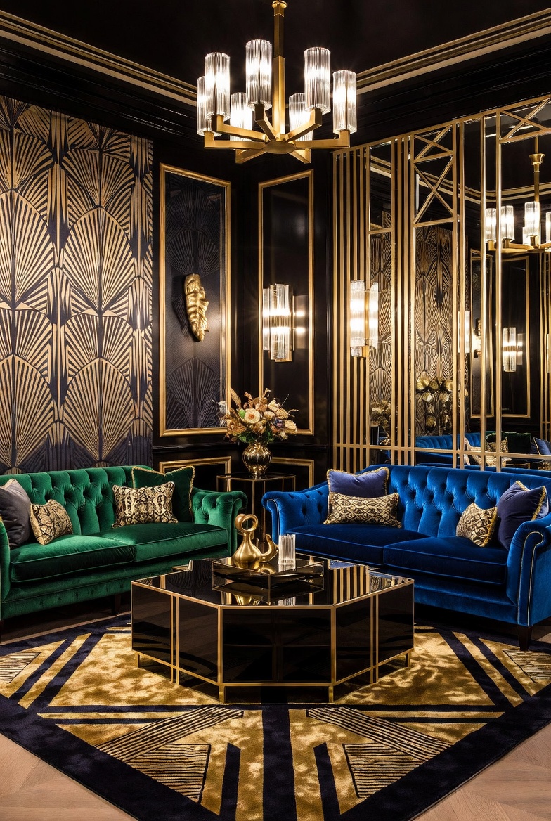 Consider statement pieces that embody Art Deco flair, such as a sculptural chandelier or a geometric coffee table. Another option is to use vintage Art Deco mirrors to enhance light and depth in your space, giving your rooms that timeless sophistication. Remember to balance bold elements with more subdued pieces to maintain a harmonious look.