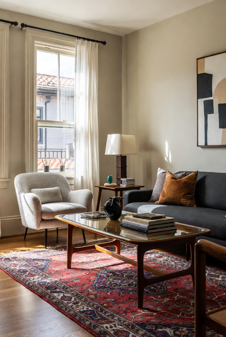 To achieve cohesive design, keep a few common threads throughout your decor. For example, use a consistent color palette or similar textures to tie different eras together. A vintage mirror framed in ornate gold can complement modern minimalist art or sleek furniture, creating a balanced yet dynamic look that makes your home truly stand out.