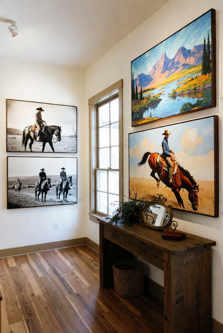Your wall art selection plays a crucial role in conveying the spirit of Western design. From sweeping landscapes featuring mountains and prairies to vintage cowboy imagery, the art you choose should reflect not just the aesthetics of the West but also your personal taste. Think about incorporating a gallery wall that bursts with personality—mix framed photographs, rustic wood art pieces, and even mounted antlers for a vibrant showcase.